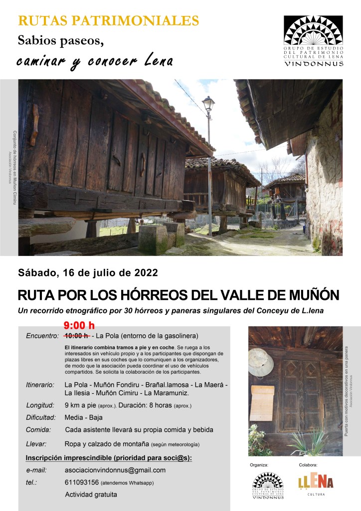 Itinerario (parte en coche y parte a pie): La Pola – Muñón Fondiru – Brañal.lamosa – La Maerá – La Ilesia – Muñón Cimiru – La Maramuniz